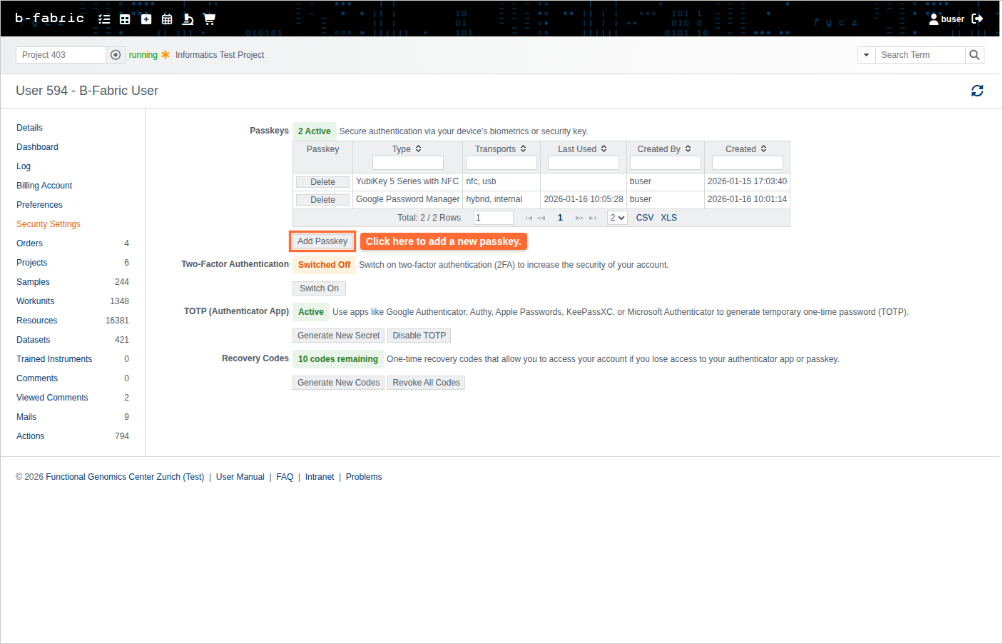 - Navigate to your user profile and click the 'Two Factor' tab.
